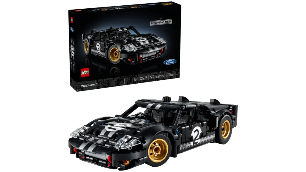 Condu spre victorie și sărbătorește o icoană a automobilismului cu acest model de mașină de curse LEGO Technic Ford GT40 MKII din 1966 pentru adulți (42223).