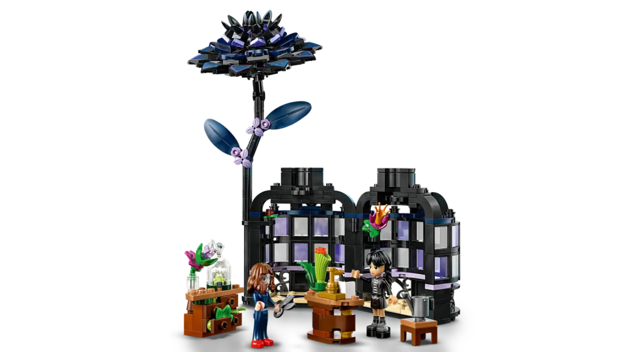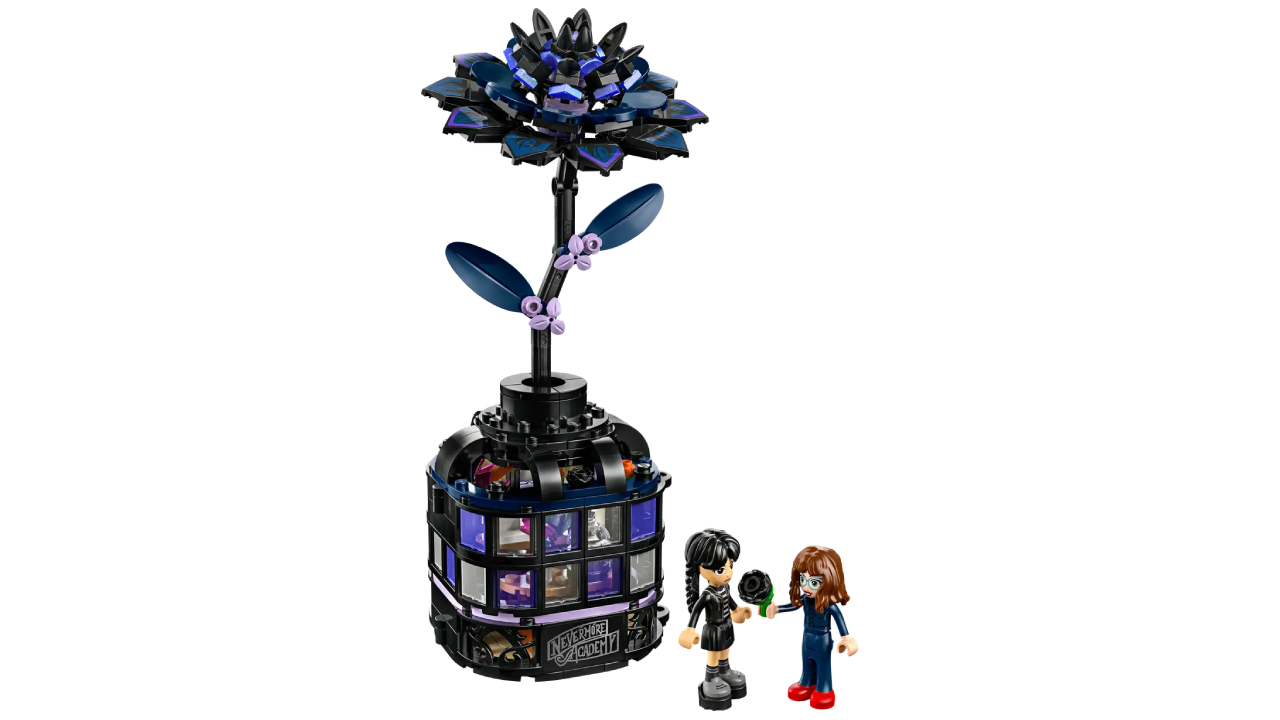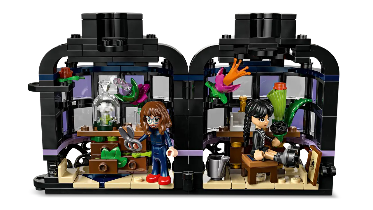 Setul cadou detaliat LEGO Wednesday Addams conține 4 mini-figurine de colecție Wednesday și Enid, personajul Thing și un model din camera de cămin.