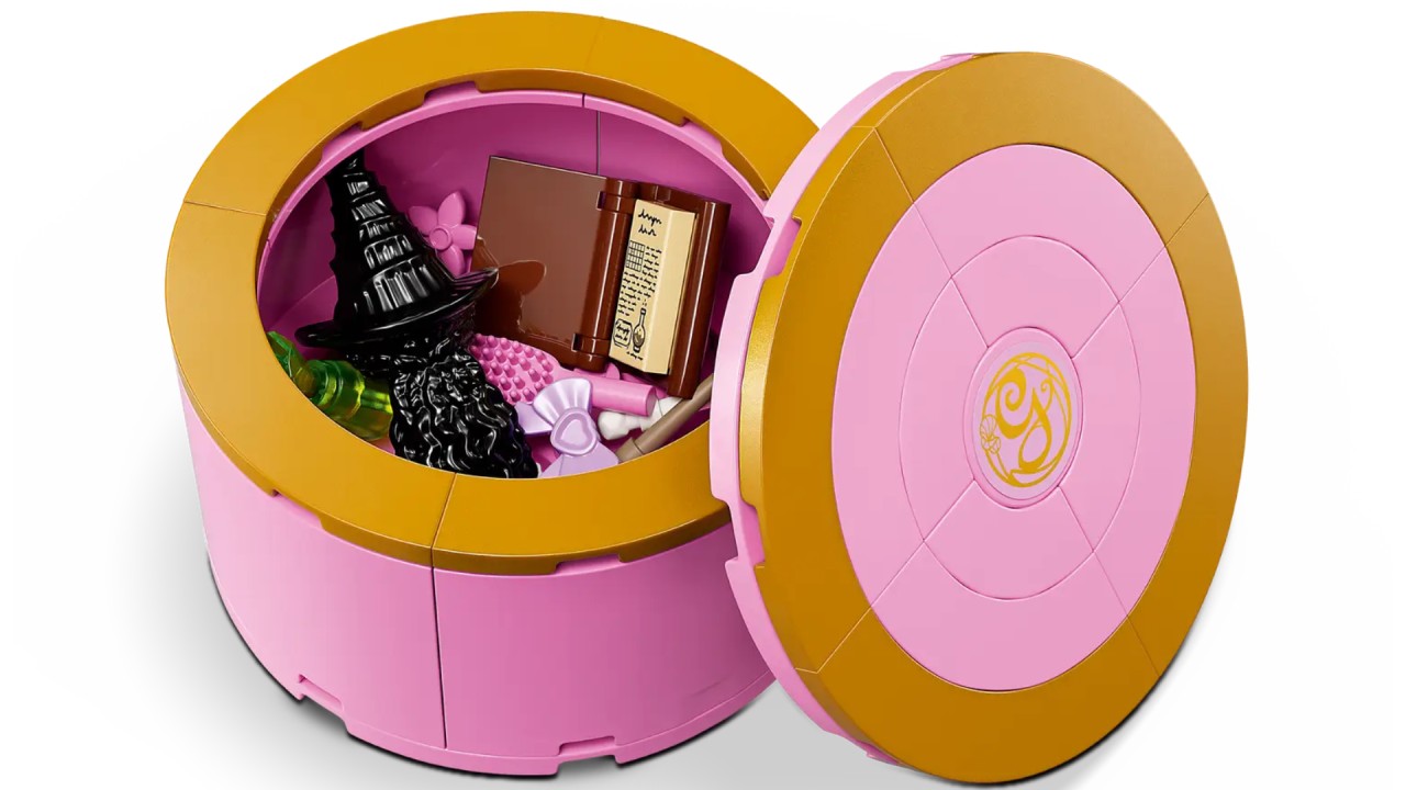 Această jucărie de vrăjitoare pentru copii constă dintr-un frumos cufăr construibil care se deschide într-un set de joacă detaliat pentru casa de păpuși al dormitorului fetelor de la Universitatea Shiz.