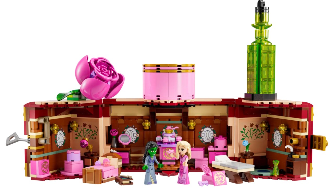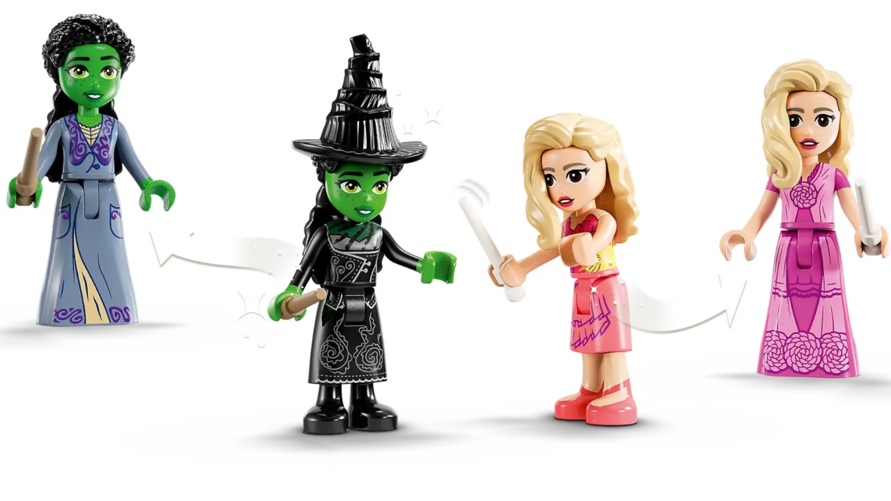 Plin de accesorii autentice, acest set de joacă pentru casa de păpuși le permite copiilor să recreeze scena în care Glinda promite să o facă pe Elphaba „populară”.