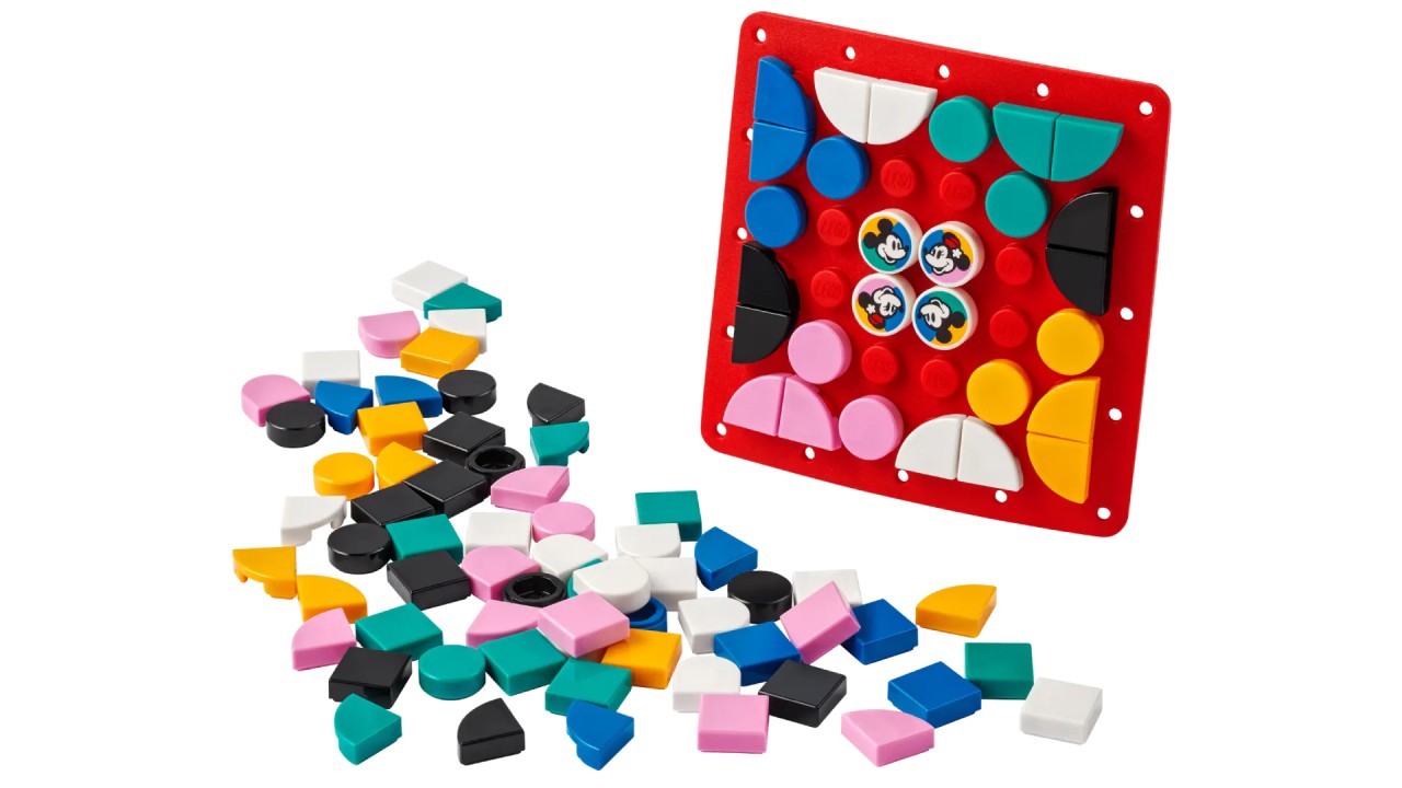 Acest set creativ conține un plasture flexibil 6x6 cu cusătură de culoare roșie, o mulțime de piese în culori vibrante, plus piese decorate cu Mickey Mouse și Minnie Mouse de la Disney.