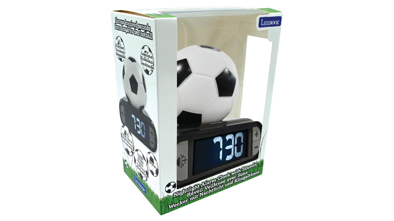 Alarmă cu volum reglabil și alegere de tonuri de apel inspirate din lumea fotbalului.