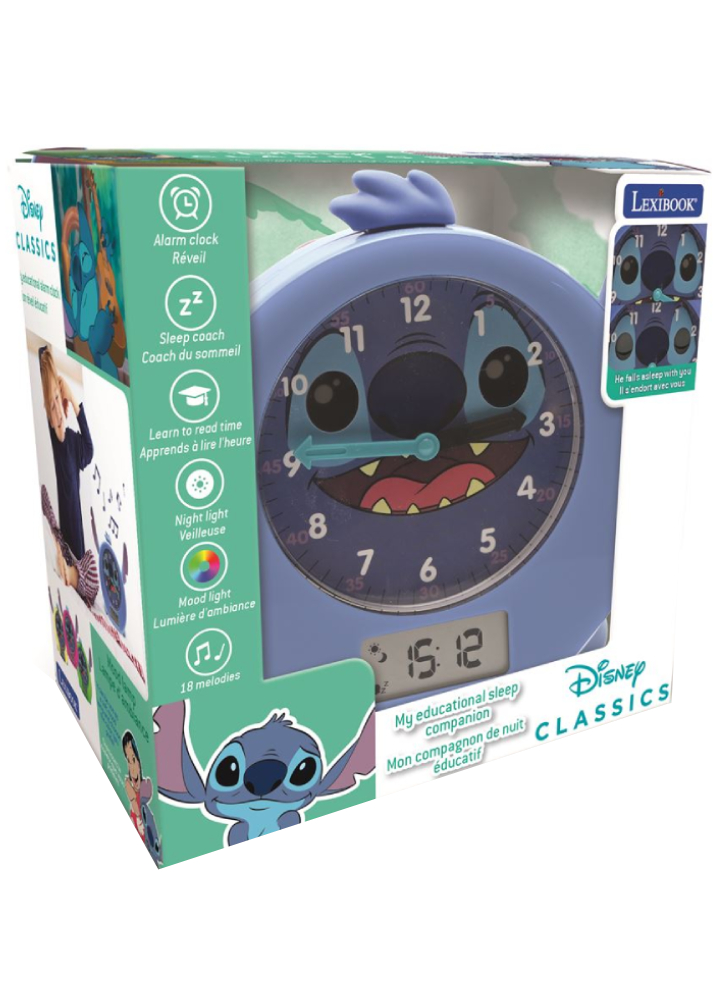 Watch as his eyes gently close when it's time for a nap and magically open when it's time to wake up. The analog and digital time display keeps everyone informed.