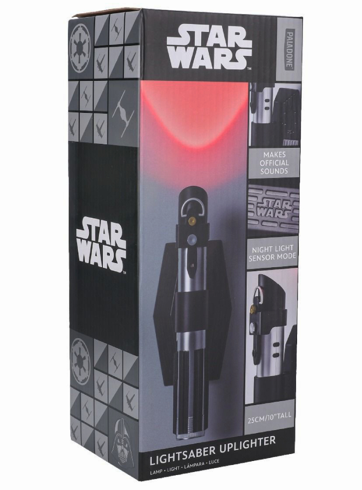 Arată-ți loialitatea față de partea întunecată cu acest Lightsaber Uplighter. Lumina are forma sabiei laser a lui Darth Vader și, cu o placă din spate inspirată de Steaua Morții amenințătoare, o puteți monta pe un perete.