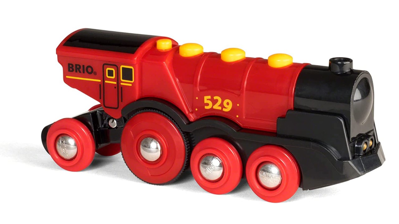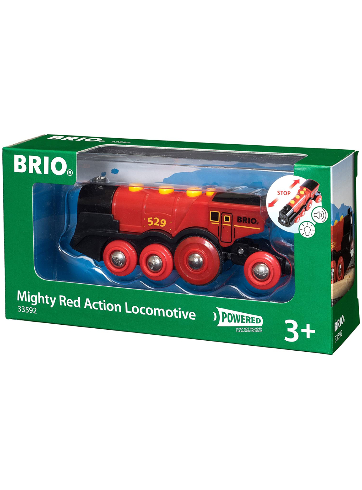 Get your budding train engineer on track with a BRIO World Mighty Red Action Locomotive toy train.