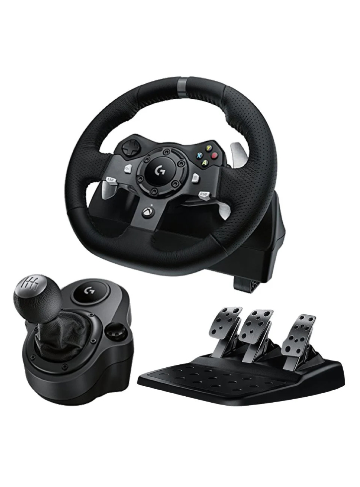 Logitech G920 Driving Force este volanul de curse simulate definitiv pentru cele mai recente titluri Xbox Series X/S, Xbox One și PC, cu feedback realist de forță cu două motoare și angrenaje elicoidale pentru o direcție silențioasă și lină.