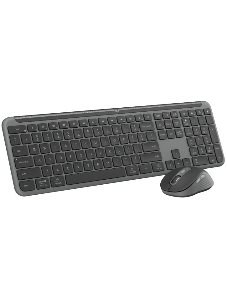 Descoperă combinația perfectă de eleganță și performanță cu Logitech Signature Slim Wireless Keyboard & Mouse Combo MK950 în culoarea modernă Graphite.