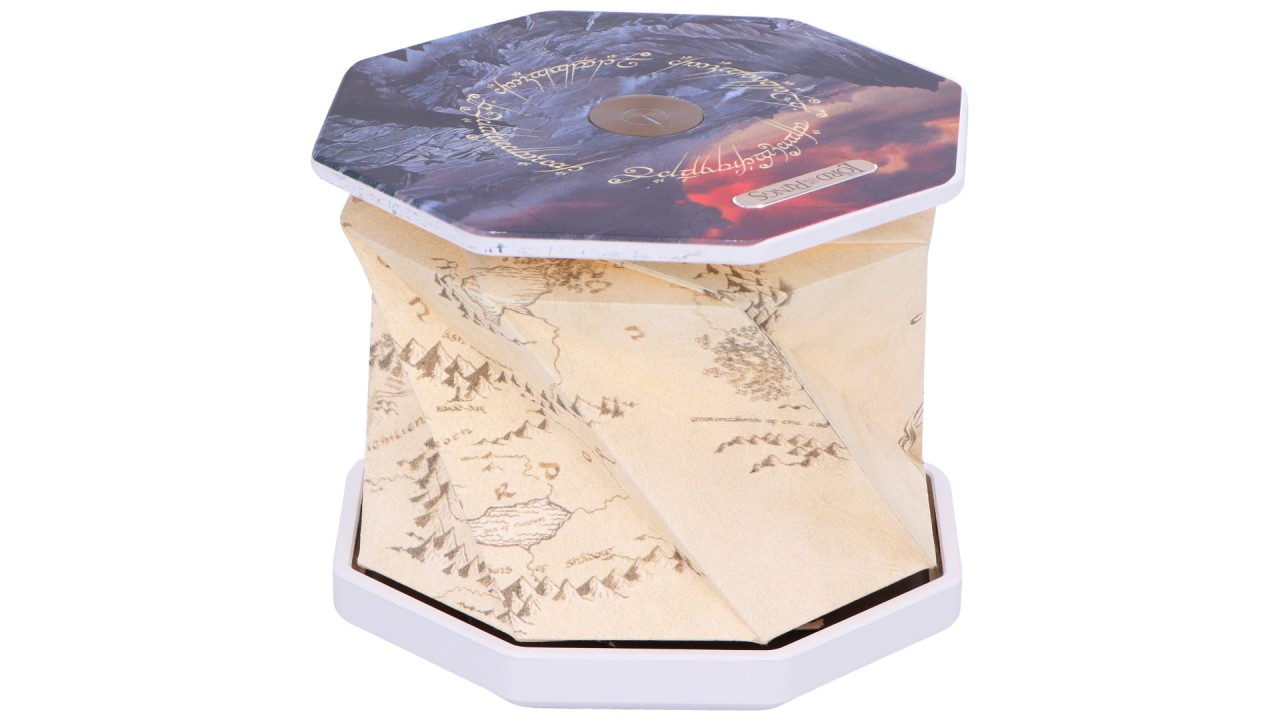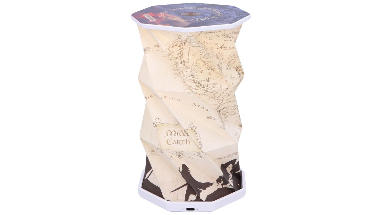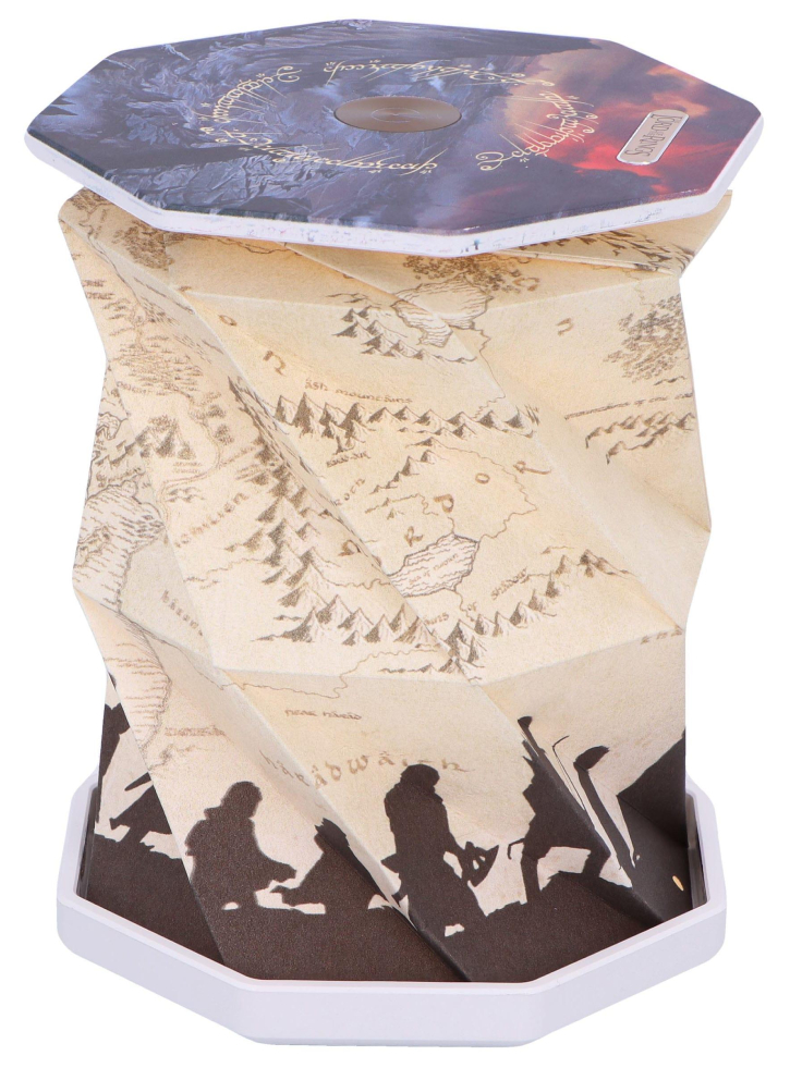 Această lampă Lord of the Rings, detaliată cu harta iconică și siluetele călătoare ale Fellowship-ului, aruncă o lumină caldă, alungând umbrele la fel cum toiagul lui Gandalf a luminat minele din Moria.