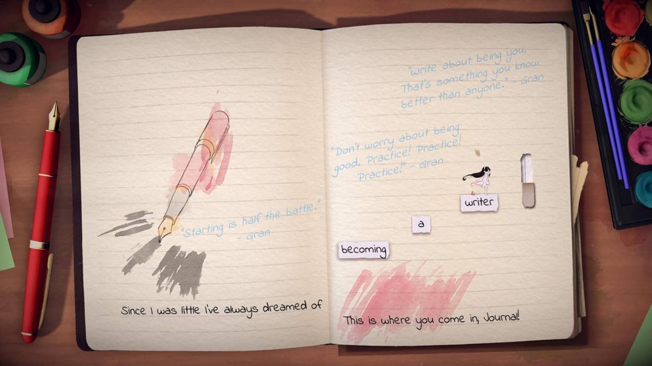- Navighează prin lumi frumoase 2D amplasate în interiorul jurnalului unei tinere fete, mergând pe cuvinte și folosindu-le ca instrumente pentru a rezolva diferite puzzle-uri.