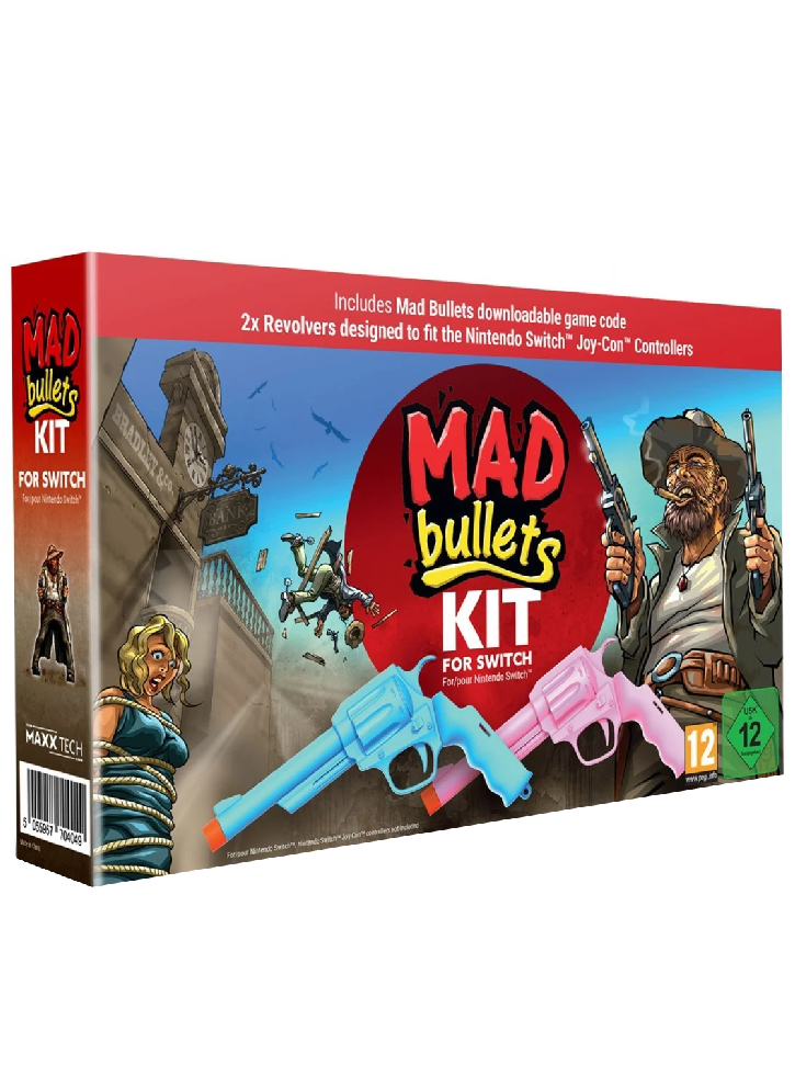 Cuprins: 1 x cod de joc descărcabil Mad Bullets, 2 x Revolvere concepute pentru a se potrivi cu controllerele Joy-Con pentru Nintendo Switch (controllerele Joy-Con pentru Nintendo Switch se vând separat).