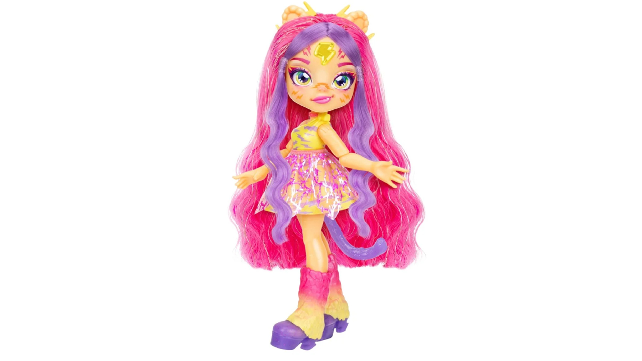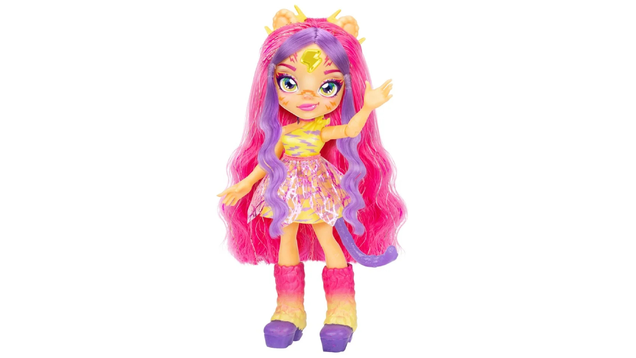 Tiggz, păpușa inspirată de un tigru, impresionează prin bijuteria luminoasă de pe frunte, ținuta cu accente iridescente, părul lung ce poate fi coafat și cele 7 puncte de articulație care permit o joacă creativă și realistă.