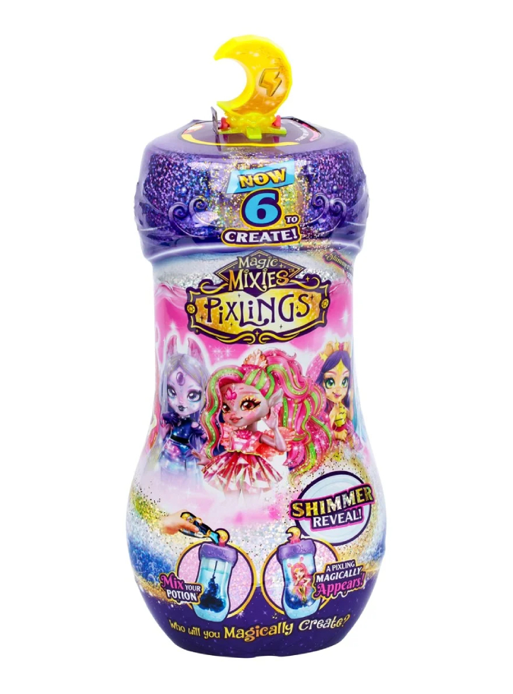 Seria Magic Mixies Pixlings Shimmerverse aduce o experiență magică și interactivă, unde copiii își pot crea propria păpușă fermecată adăugând ingrediente speciale într-o sticlă care face bule și capătă o nuanță strălucitoare de albastru.