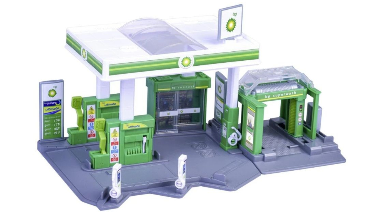 Pe o suprafață de 17,5 x 28,3 cm, fanii mașinilor vor găsi tot ce își dorește inima unui șofer: 6 locuri de parcare, un depozit cu ușă, o spălătorie auto mobilă, pompe de încărcare și alimentare cu furtunuri și conexiuni.