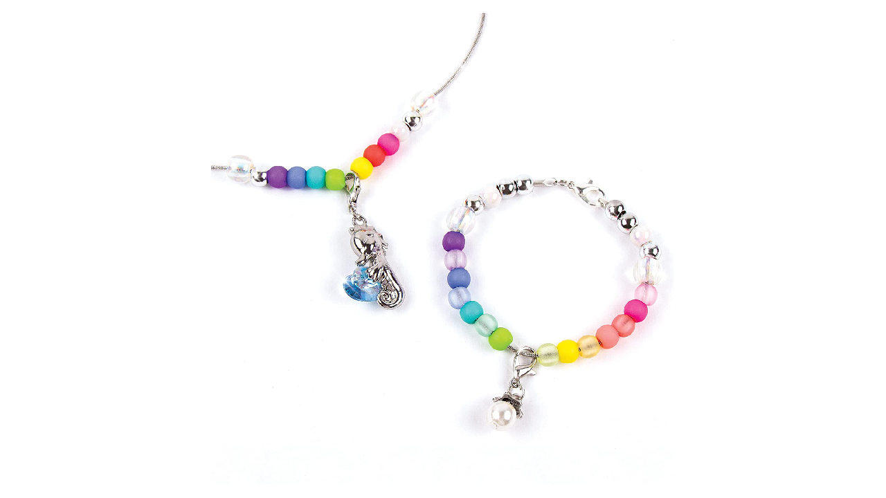 Copiii pot realiza o brățară și un colier cu mărgelele și cristalele Swarovski incluse.