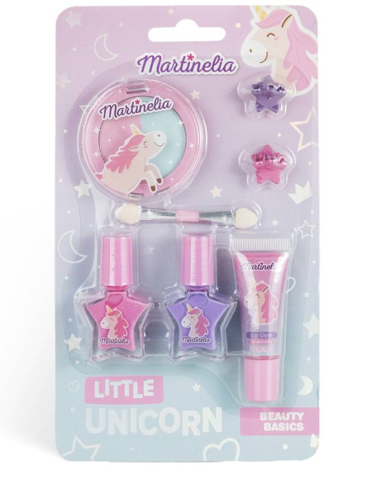 Pachetul conține 2 lacuri de unghii, 1 luciu de buze, 2 farduri de obraz, 2 agrafe de păr, 1 aplicator.