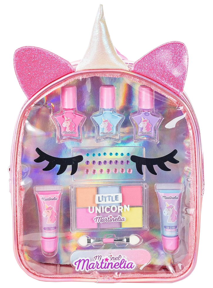 Rucsacul Unicorn ajută la organizarea și mutarea a tot ce are nevoie frumusețea copiilor: gloss, farduri de ochi, stickere, pensulă, pilă de unghii și lac de apă.