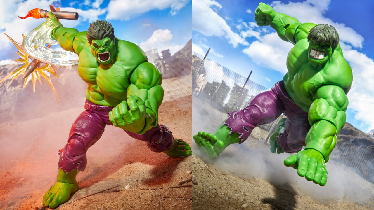 Reimaginează scene inspirate din benzile desenate cu Hulk pe raftul tău cu figurinele de acțiune Marvel Legends.