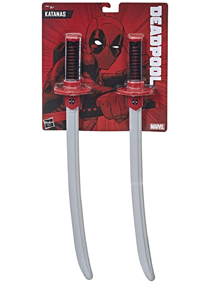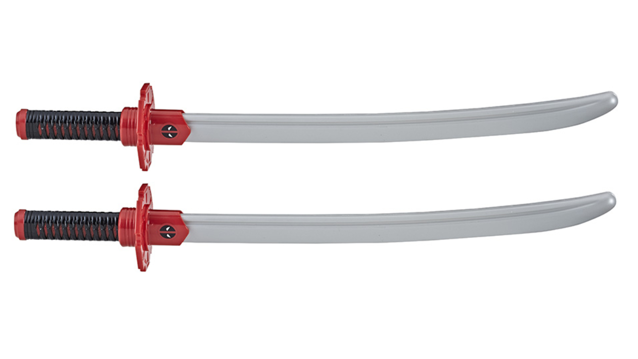 The set includes two katanas, as Deadpool is often seen wielding dual blades.