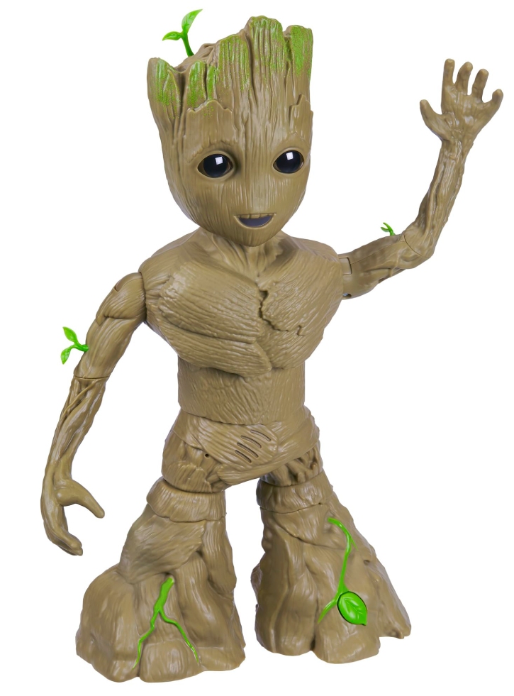 Descoperă o transformare impresionantă: apăsând un buton, Groot devine mai înalt, ajungând la o înălțime de 45,7 cm.