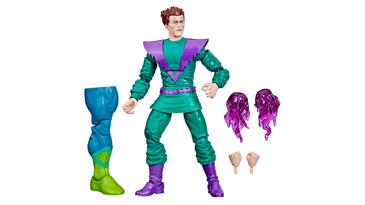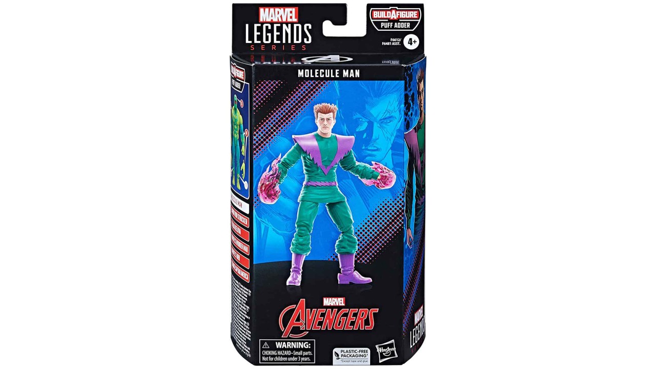 Această figurină de colecție Marvel Legends Classic Comic este detaliată pentru a semăna cu personajul Molecule Man din Marvel Comics, având detalii premium și multiple puncte de articulare.