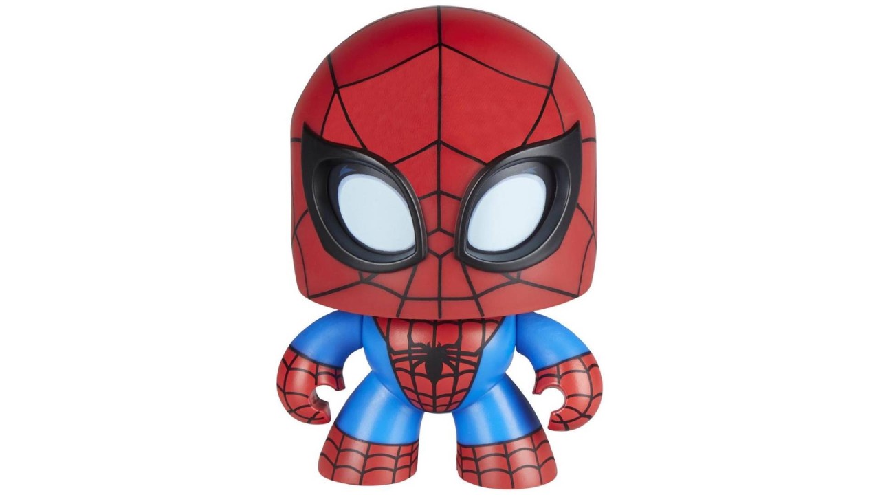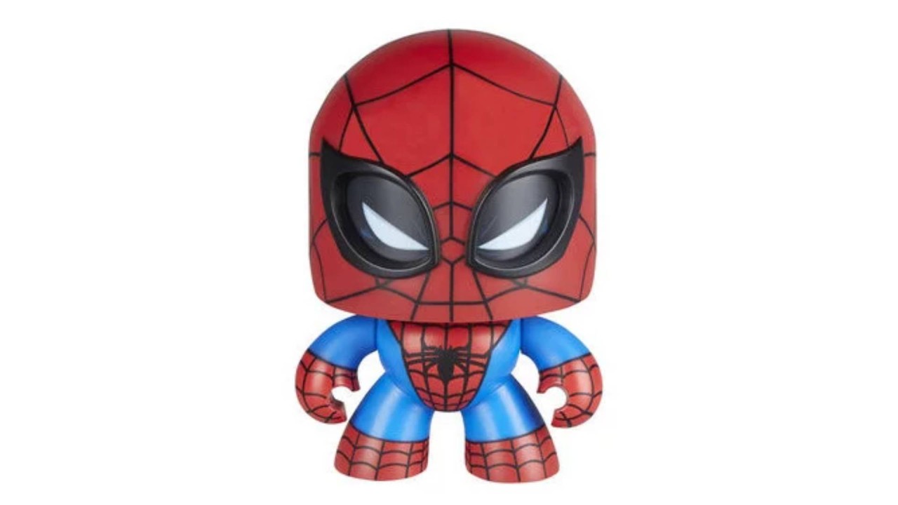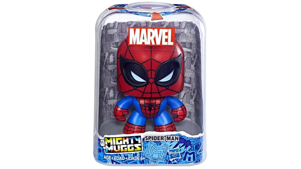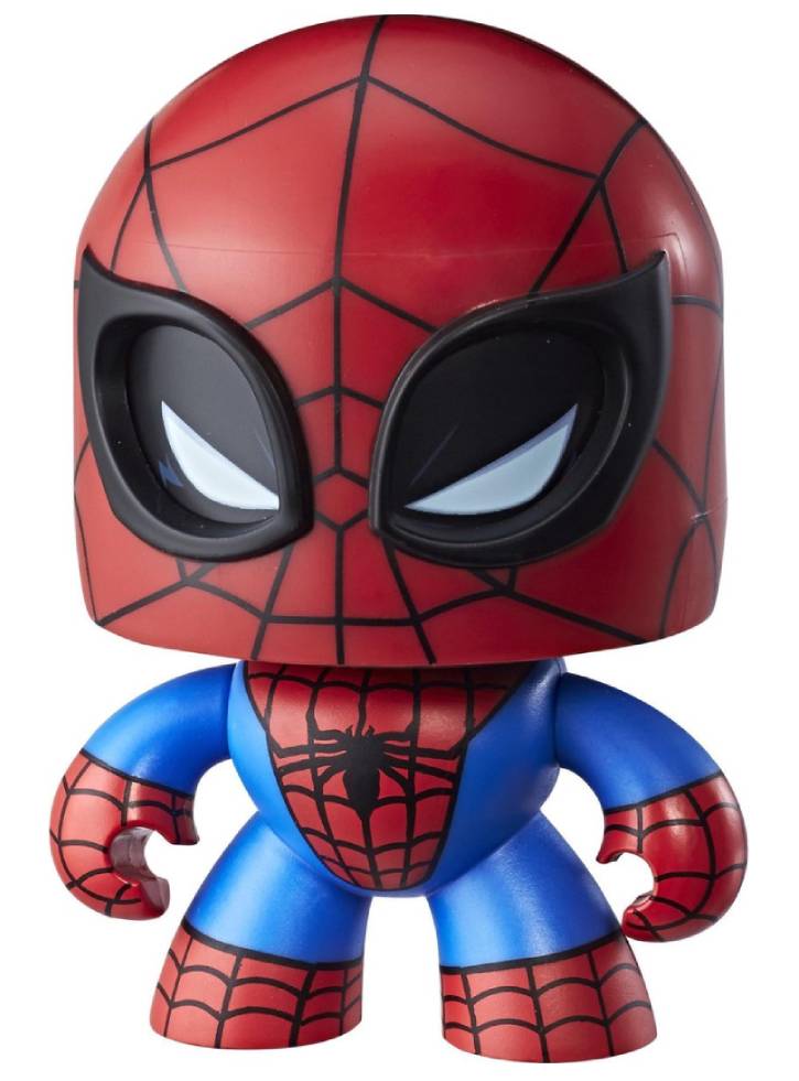 Această figurină Spider-Man Mighty Muggs are un mecanism de împingere și întoarcere. Copiii și fanii pot apăsa butonul în mod repetat pentru a face capul lui Spidey să se învârtă!