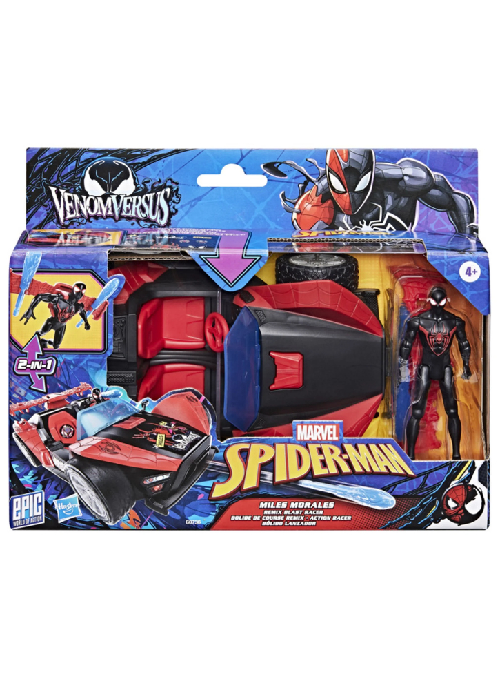 Imaginează-ți că te avânți în acțiune și aventură cu Marvel Spider-Man VenomVersus Miles Morales Remix Racer!