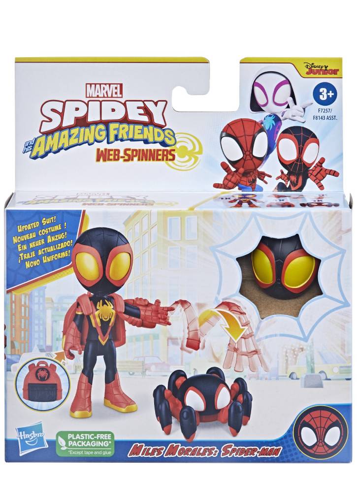 Preșcolarii își pot imagina aventuri epice ca Miles Morales: Spider-Man, lucrând cu echipa Spidey și doborându-și dușmanii cu această figurină de acțiune cu accesorii.