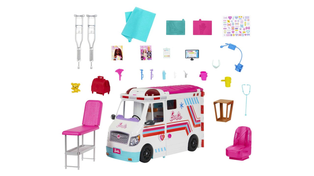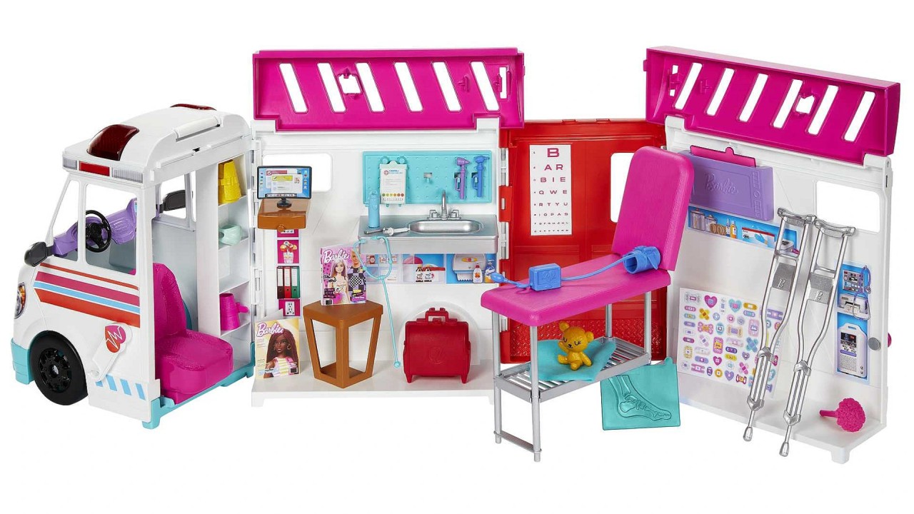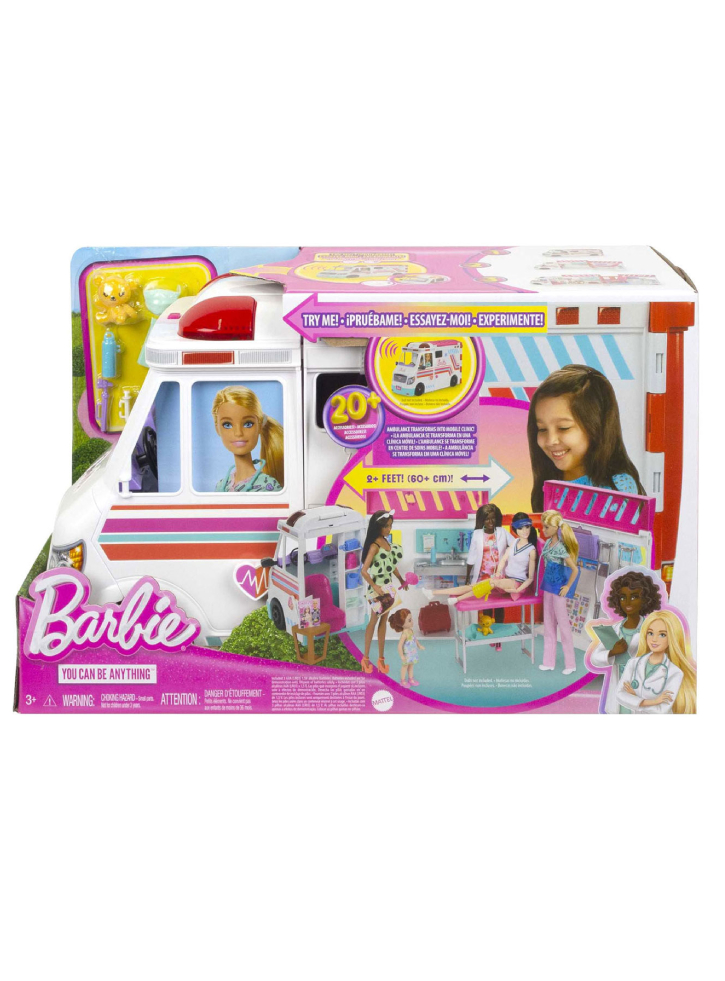 With 2-in-1 fun, the Barbie Care Clinic vehicle and playset lets kids care for patients anywhere.