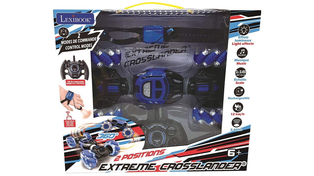 The car moves forward, backward or sideways depending on the positioning of the hand, thanks to the motion sensor built inside the bracelet!