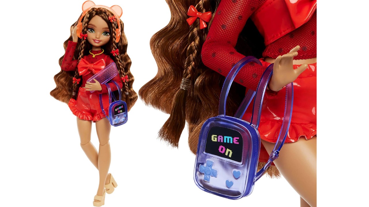 Păpușa este pozabilă și poartă haine detașabile, cum ar fi bluza ei cu buline stratificată cu o fundă roșie lucioasă, pantaloni scurți asortați și tocuri.