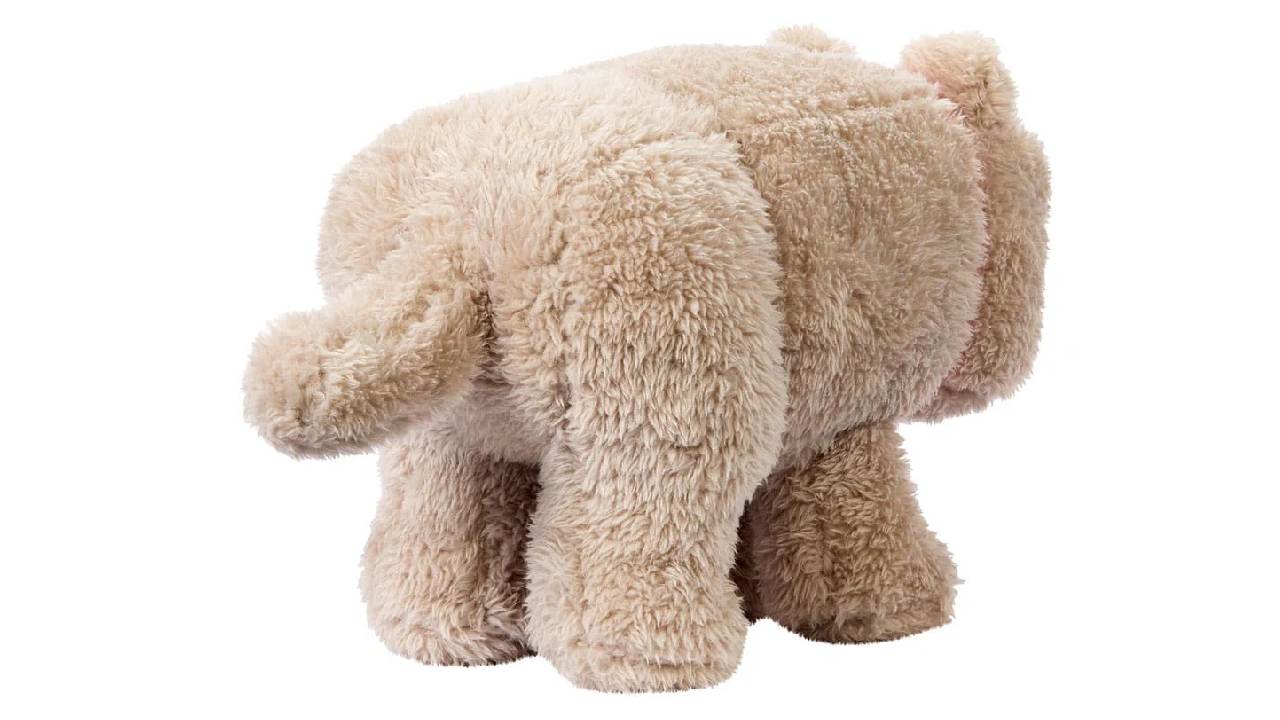 Plușul Dennis Wolf din filmul Minecraft le permite fanilor să se apropie și să îmbrățișeze unul dintre personajele lor preferate din popularul joc video.