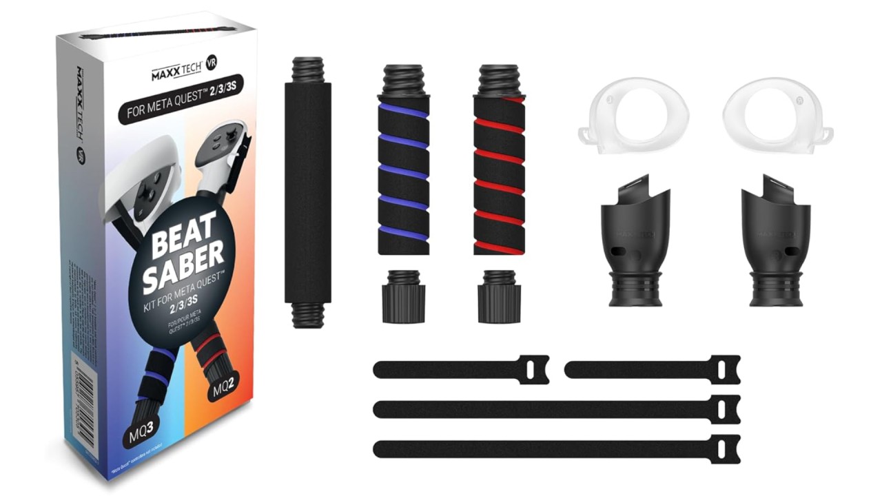 Kitul Beat Saber este acum compatibil atât cu Meta Quest 3/3S, cât și cu Meta Quest 2, incluzând toate conexiunile necesare pentru controlerele VR stânga și dreapta.