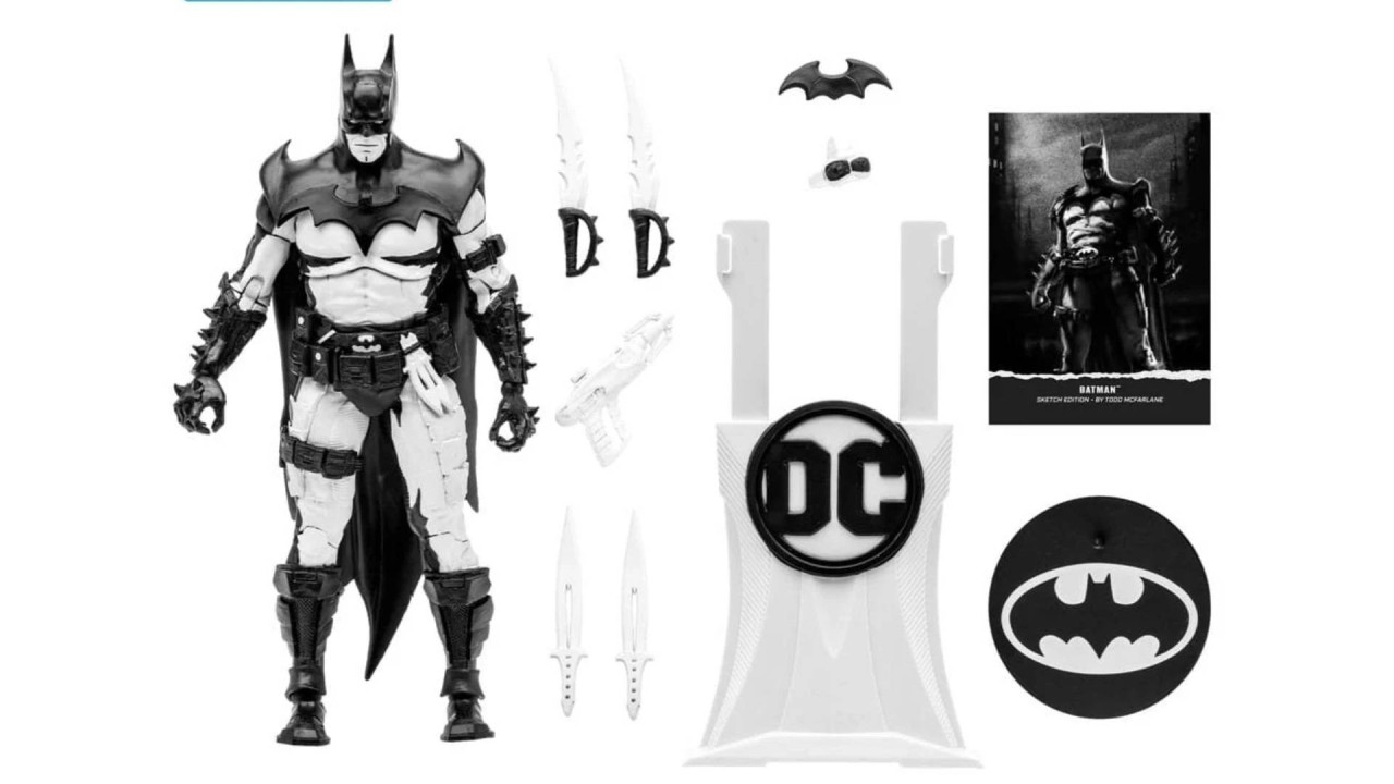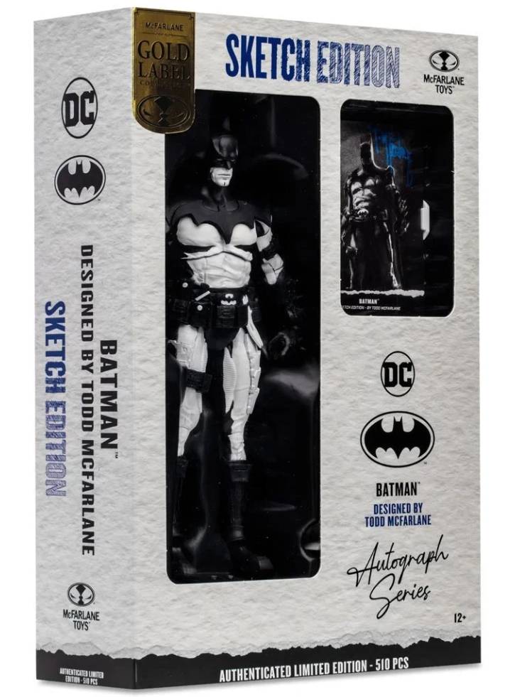 Batman este prezentat în aspectul de ediție pentru artiști cu schițe, într-o cutie exclusivă de designer.
