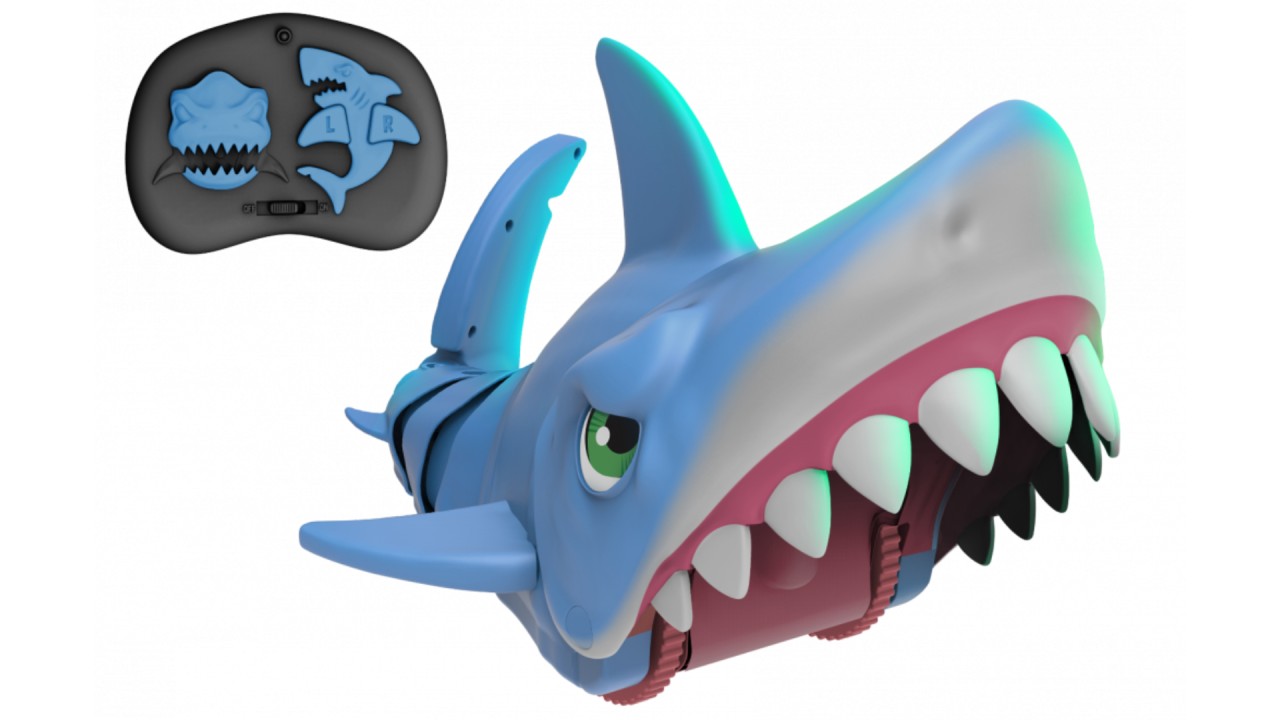 Este manevrat prin telecomandă cu un panou simplu în stil rechin, permițându-vă să mutați rechinul înainte, înapoi, la stânga și la dreapta.