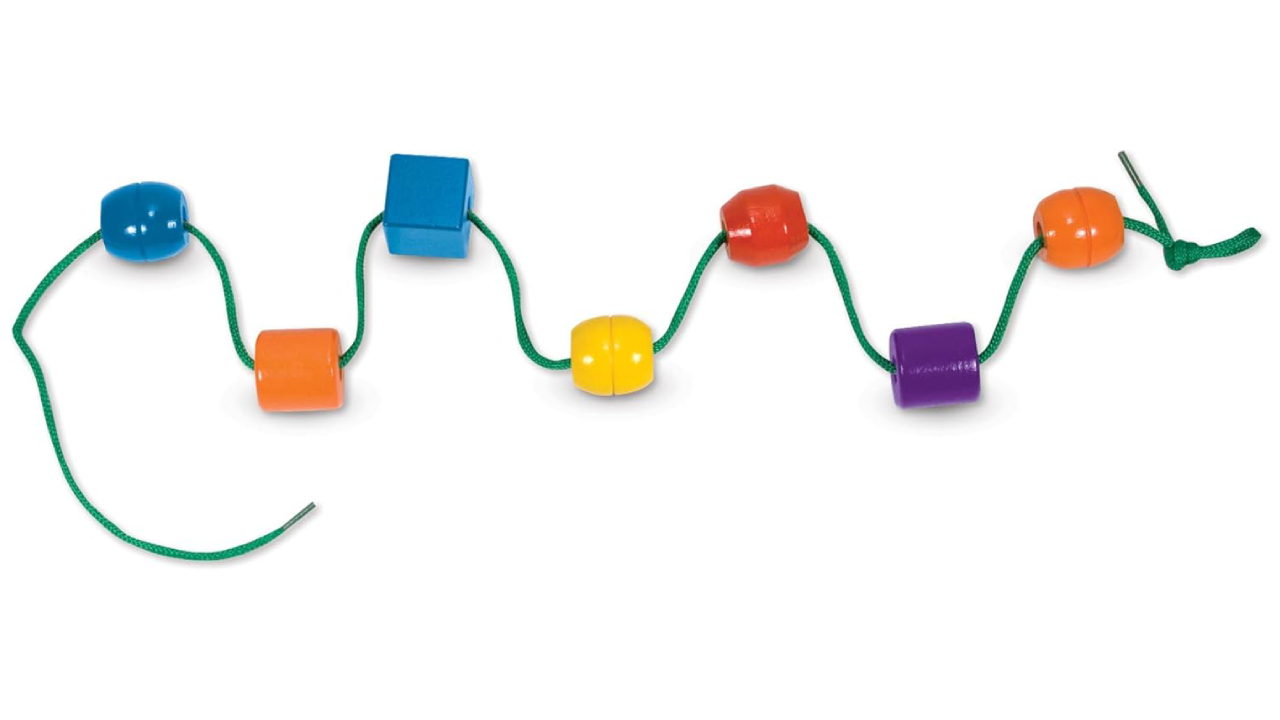 Setul Melissa & Doug Primary Lacing Beads este compus din 30 de mărgele de lemn în culori vii, de diferite forme, 2 șireturi colorate și o cutie de depozitare din lemn.