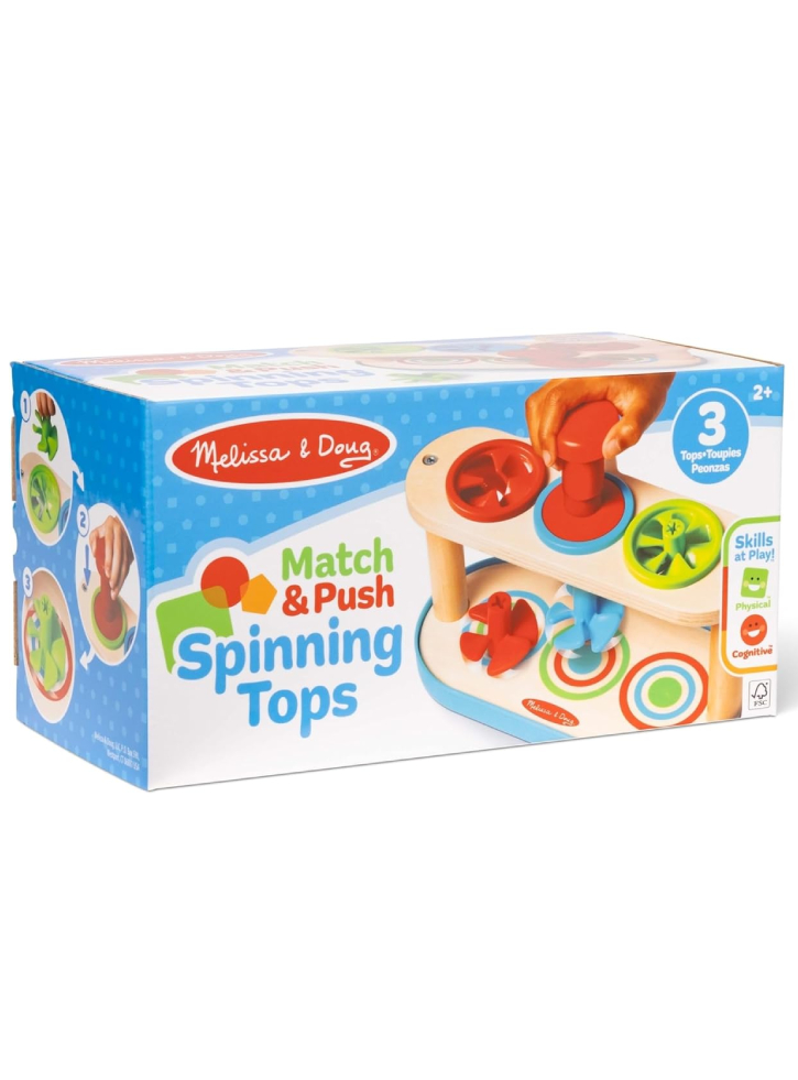 Cu această jucărie de dezvoltare distractivă de la Melissa & Doug, chiar și copiii mici se pot bucura de rotirea topurilor!