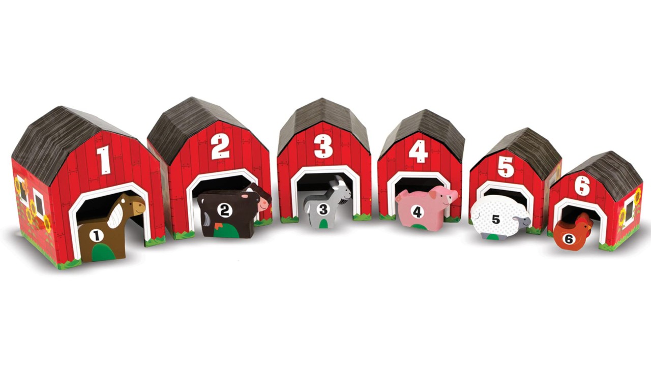 O fermă plină de jocuri de stivuire, numărare, ascunzișuri, amestecare și potrivire și imaginație!