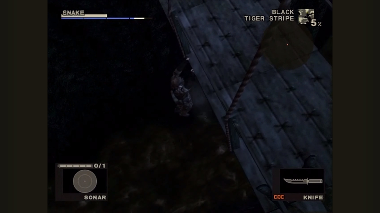 - Snake folosește camuflajul pentru a rămâne nedetectat. "Indicele de camuflaj" poate fi văzut în colțul din dreapta sus.