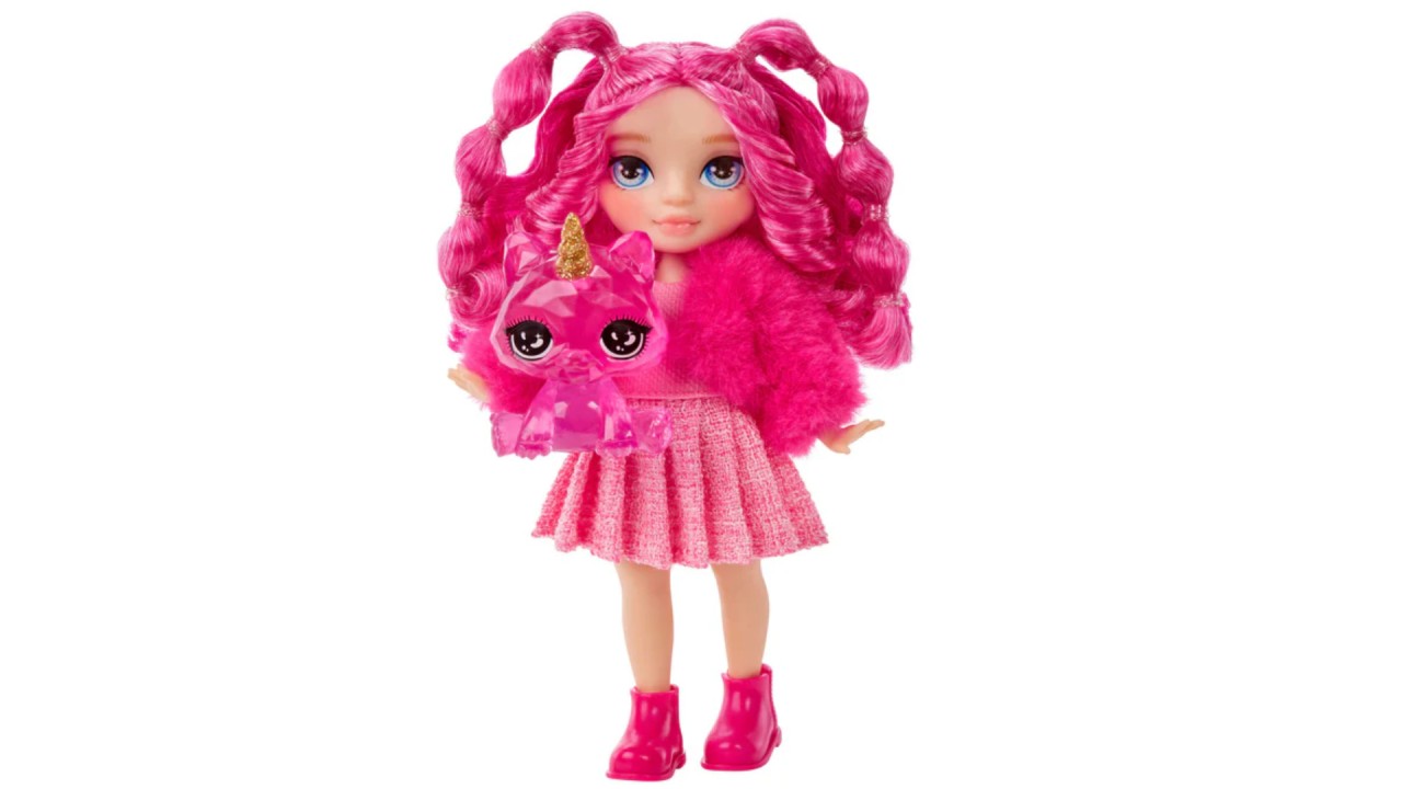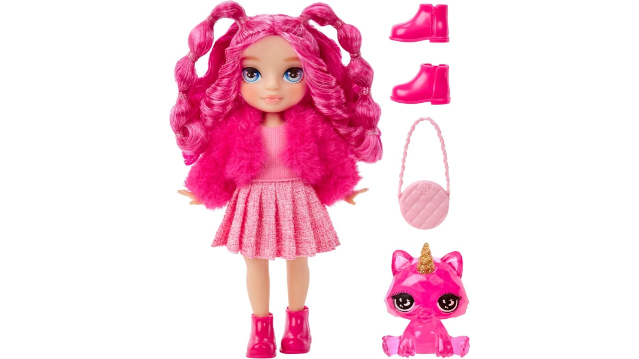 Ea vine impreuna cu un animal de companie magic, un pisoi roz adorabil cu un corn, aducand si mai multa fantezie in joaca ta, haine si incaltaminte extensibile si o geanta de mana.
