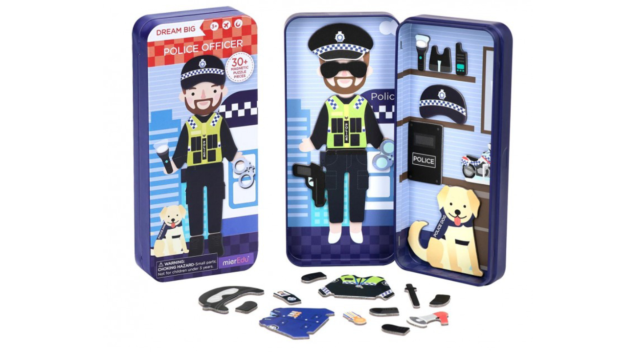 Play with more than 30 magnets to build characters in various outfits and learn about being a police officer.