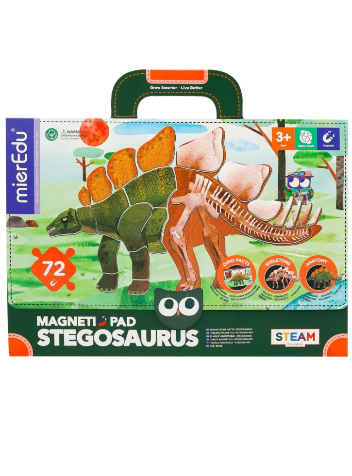 Proiectat pentru începători pentru a învăța elementele de bază ale stegosaurus, inclusiv corpul și oasele puzzle-ului magnetic stegosaurus și, de asemenea, o carte de anatomie stegosaurus.