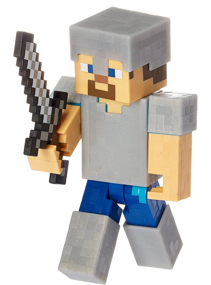 Colecționează această figurină Minecraft a lui Steve în armur sa similara cu cea din jocul video.