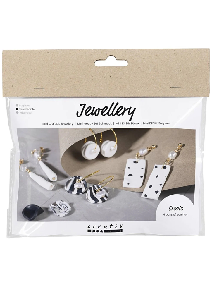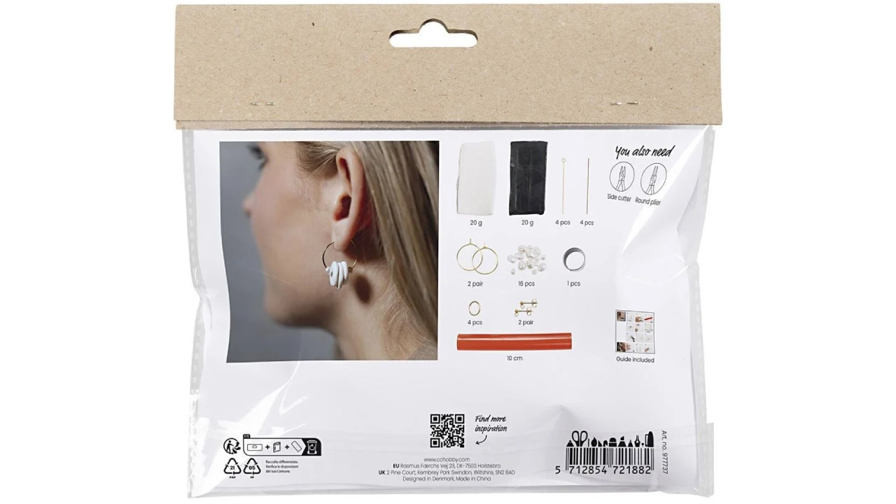Acest kit vă permite să vă formați proprii cercei unici din argilă polimerică. Include materiale pentru a face patru perechi de cercei și toate instrucțiunile de care aveți nevoie.