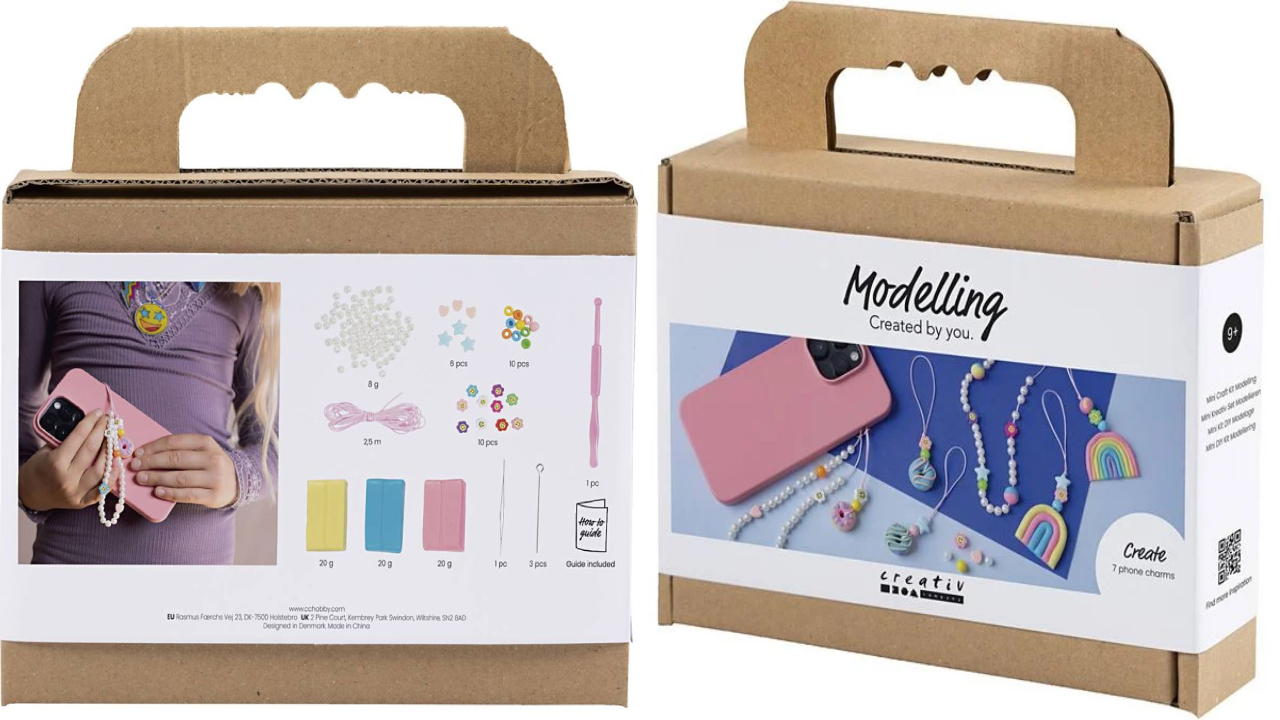 Argila fină inclusă în kit este ușor de modelat și poți amesteca culorile pentru a crea propriile nuanțe. După ce figurinele sunt coapte, adaugi mărgele de ceară și le agăți de husa telefonului tău mobil.