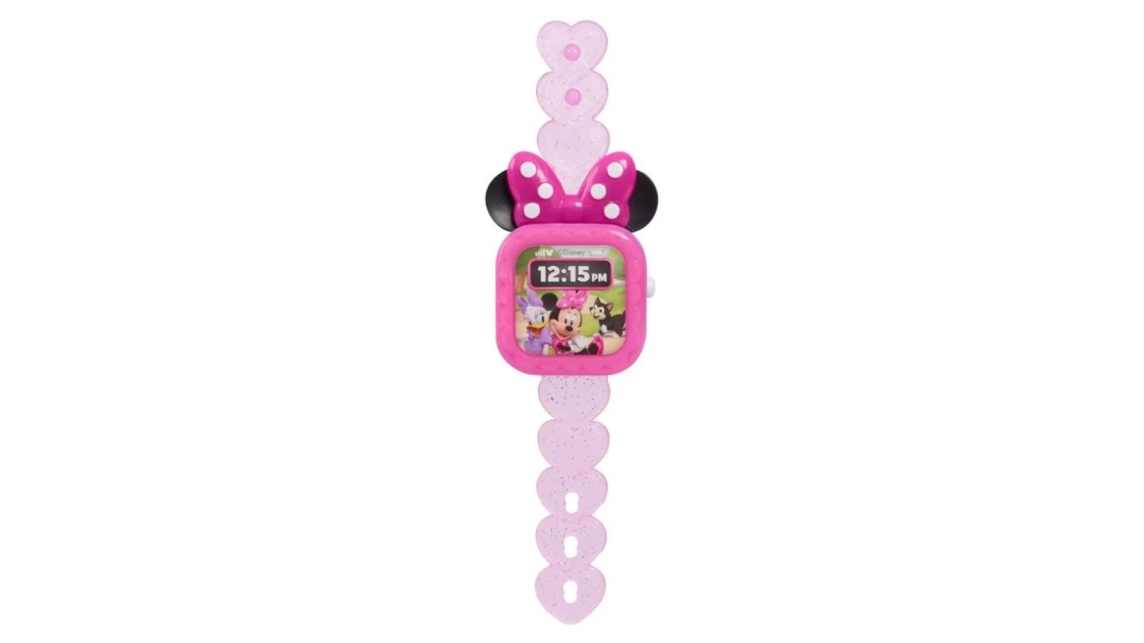 Jucăria Disney Junior Minnie Mouse Play Smart Watch are lumini, sunete realiste de telefon și fraze Disney Minnie Mouse.