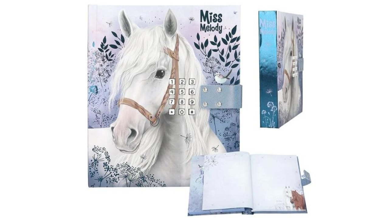 It has a beautiful horse motif and delicate floral and leaf prints on the cover.