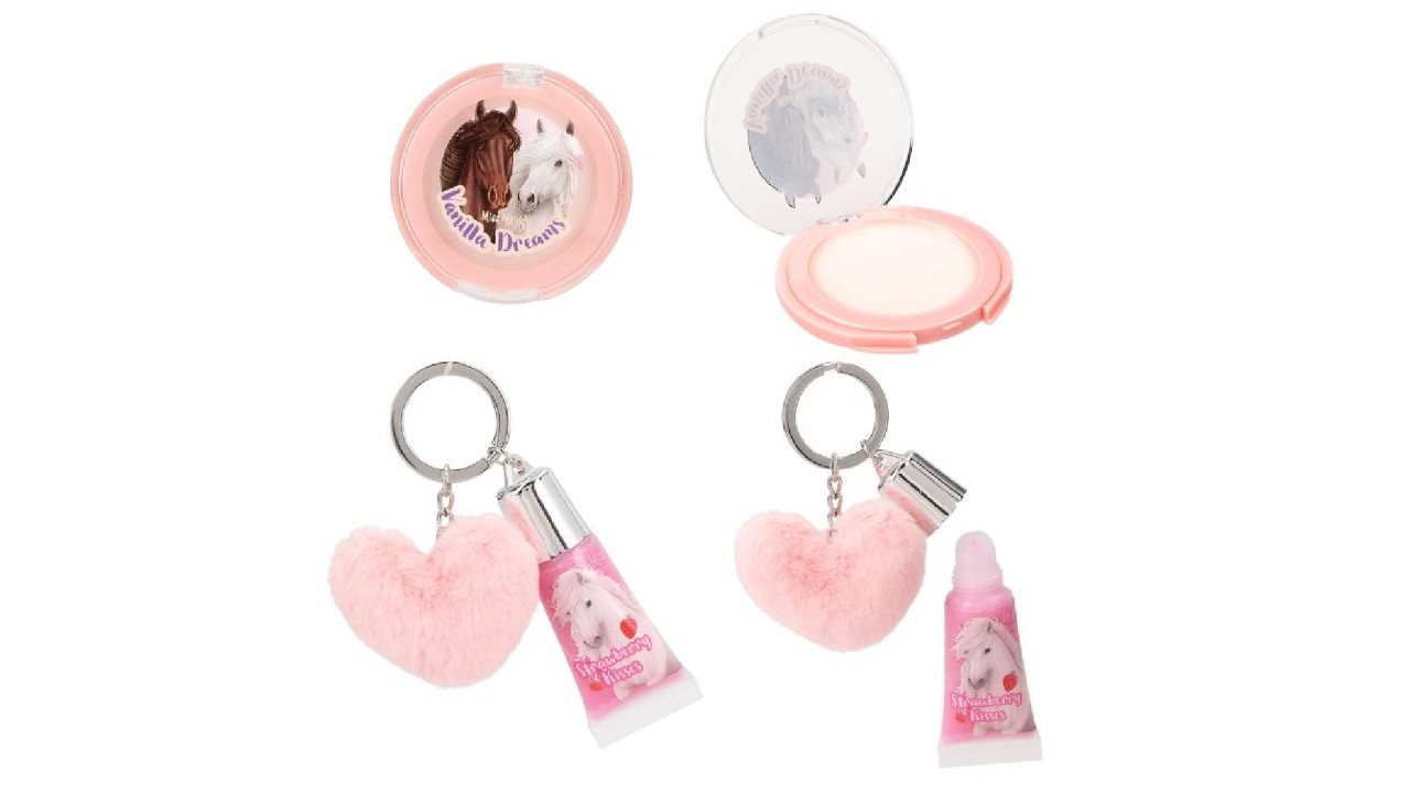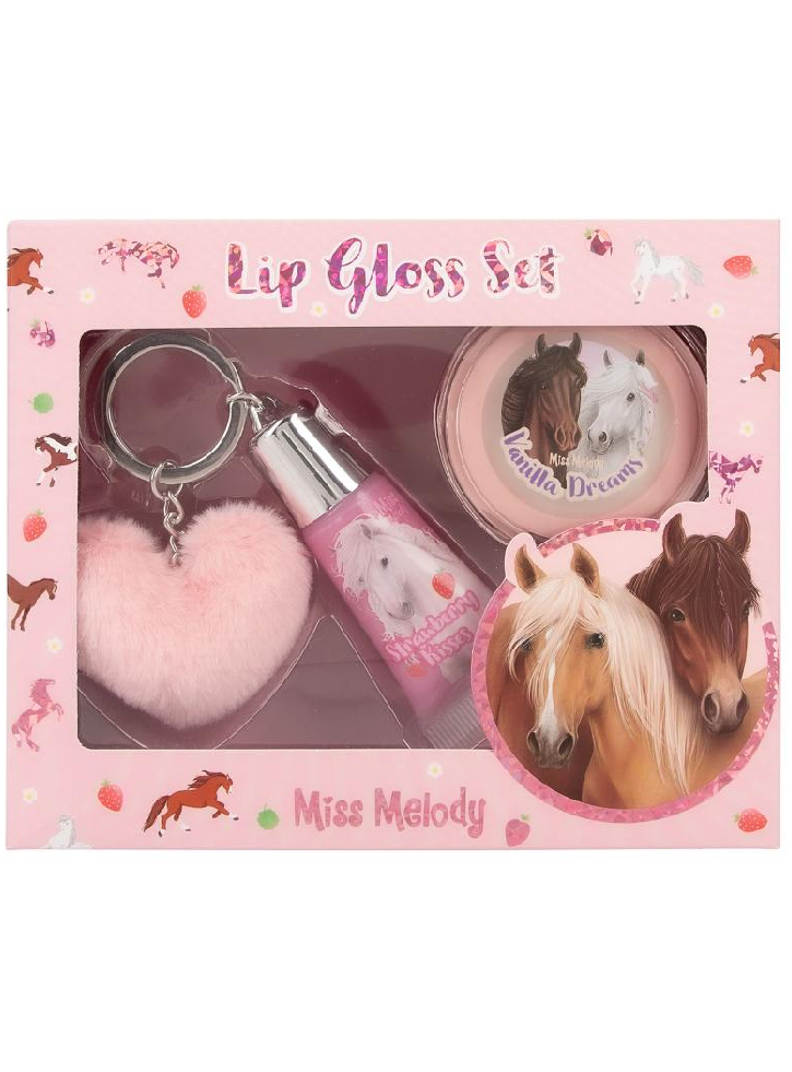 Miss Melody Lip Gloss este un set de luciuri de buze atractiv și colorat, conceput special pentru fetițe pasionate de frumusețe și de cai.