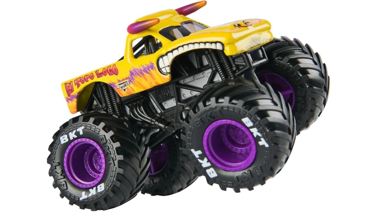 Monster Jam 1:64 Single Pack El Toro Loco este un monster truck emblematic, cunoscut pentru designul său agresiv și coarnele distinctive.