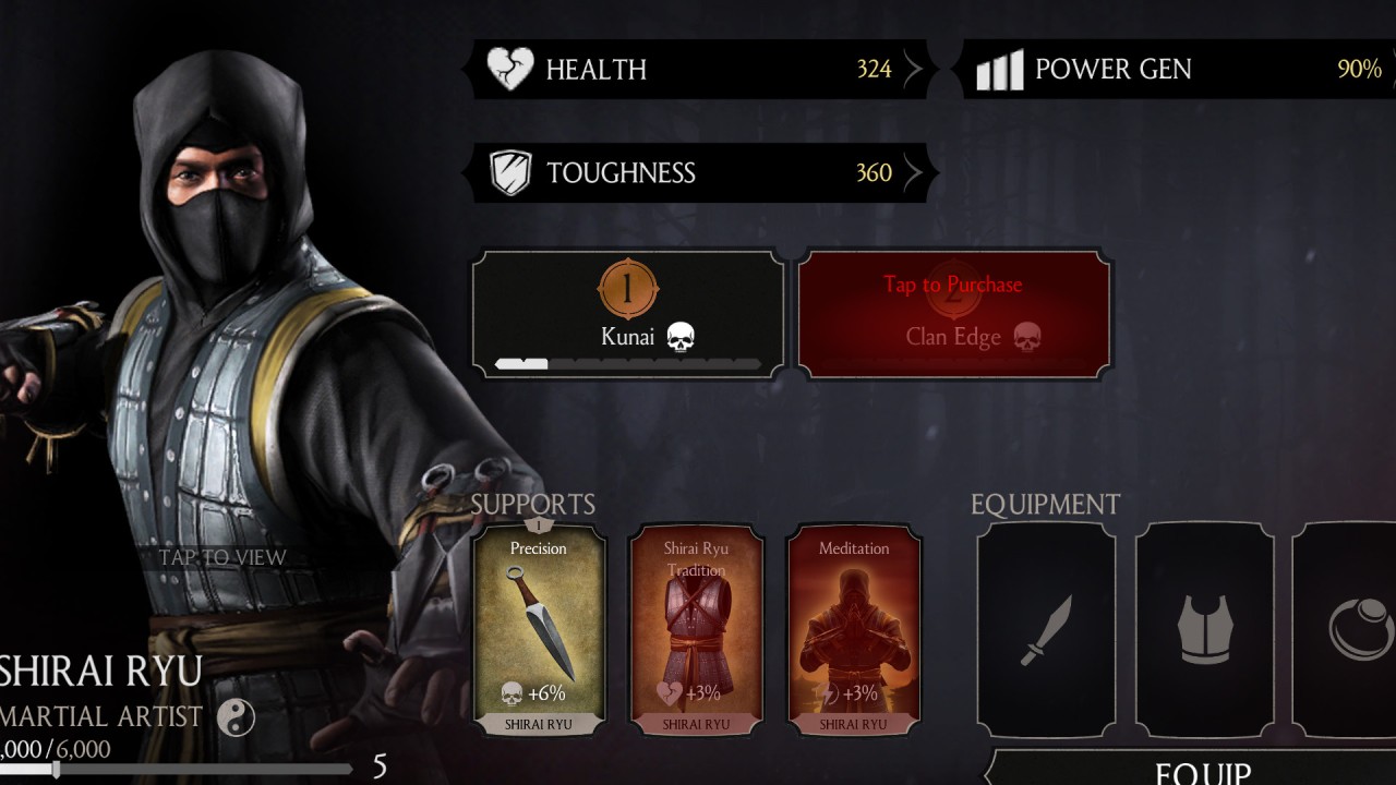 - Folosindu-l pe Kano ca exemplu: el va avea trei variante Cutthroat (atacuri îmbunătățite), Cybernetic (mai puternic la distanță lungă) și Commando (mișcări de prindere îmbunătățite).