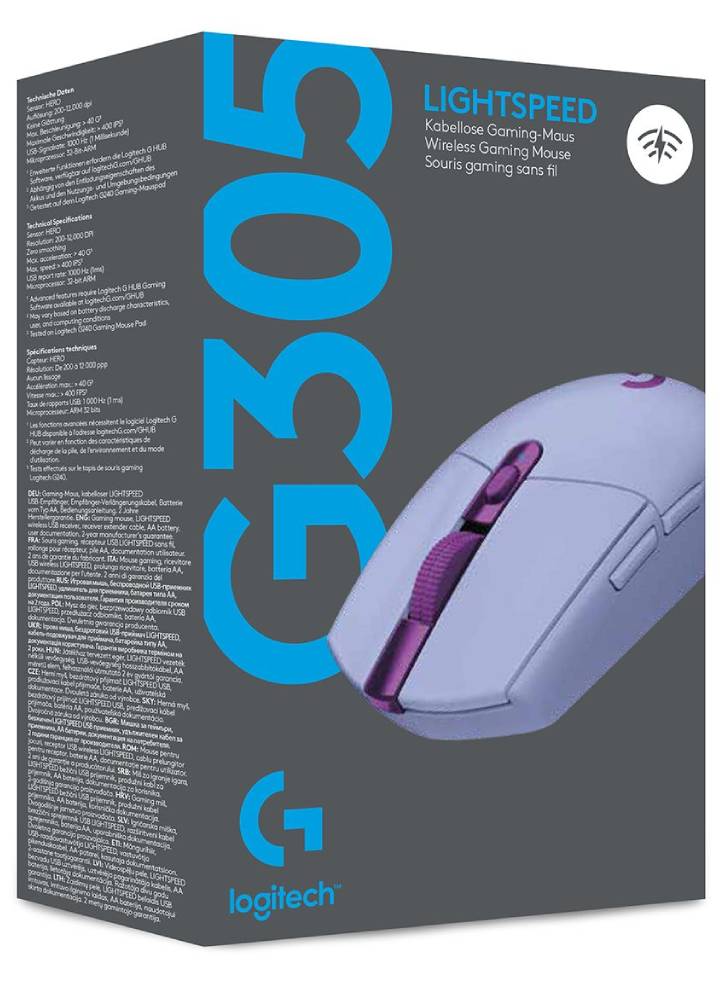 - G305 este extraordinar de ușor, cântărind doar 99 de grame, datorită designului mecanic inovator și utilizării eficiente a bateriei.